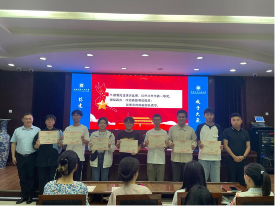 颁奖仪式上,公司党委宣传部副部长袁华宣读了颁奖文件。在热烈的掌声中,与会领导分别为宪法演讲比赛和红色征文比赛的各个奖项进行了颁奖。颁奖间隙,宪法演讲比赛优秀指导教师李艳教授、红色征文比赛组织骨干刘苏庆老师分别发表了感言,演讲比赛一等奖获得者魏源和征文比赛一等奖冯士哲等同学分别进行了风采展示,赢得现场观众的热烈掌声。