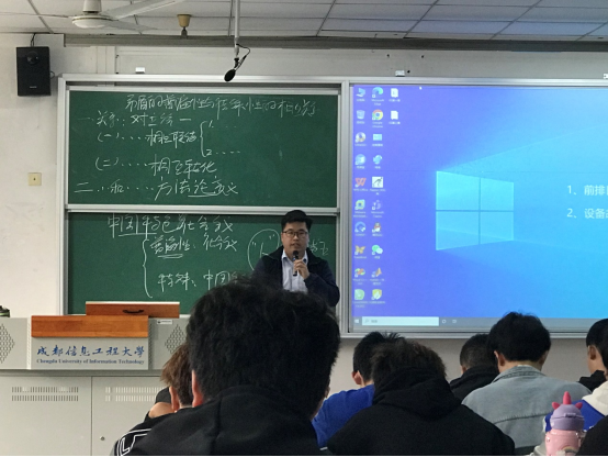 积极备战四川省2023年高校思想政治理论课“精彩一课”决赛的杨万兴老师为大家呈现了一堂精彩的马克思主义基本原理之“矛盾普遍性与特殊性”的教学观摩课,讲授但凭板书、不假课件,思路清晰、举例丰富。此外,公司同时成功入围“精彩一课”决赛的冯薇、李晓蓉两位老师也分别演练了“中国历史性变革的内涵”、“‘第二个结合’的三维向度”专题教学。